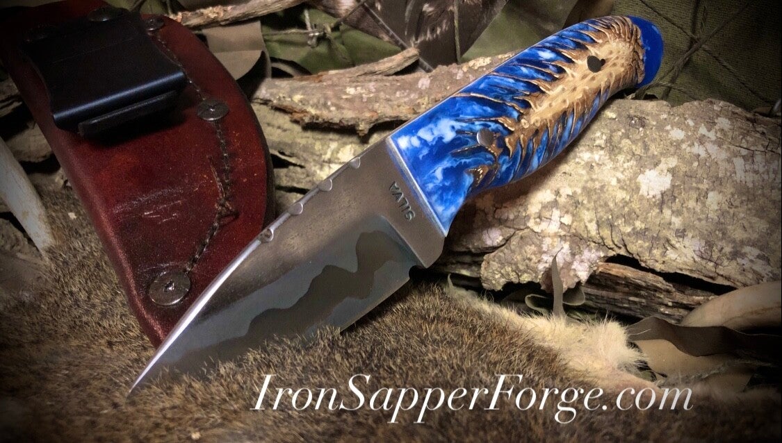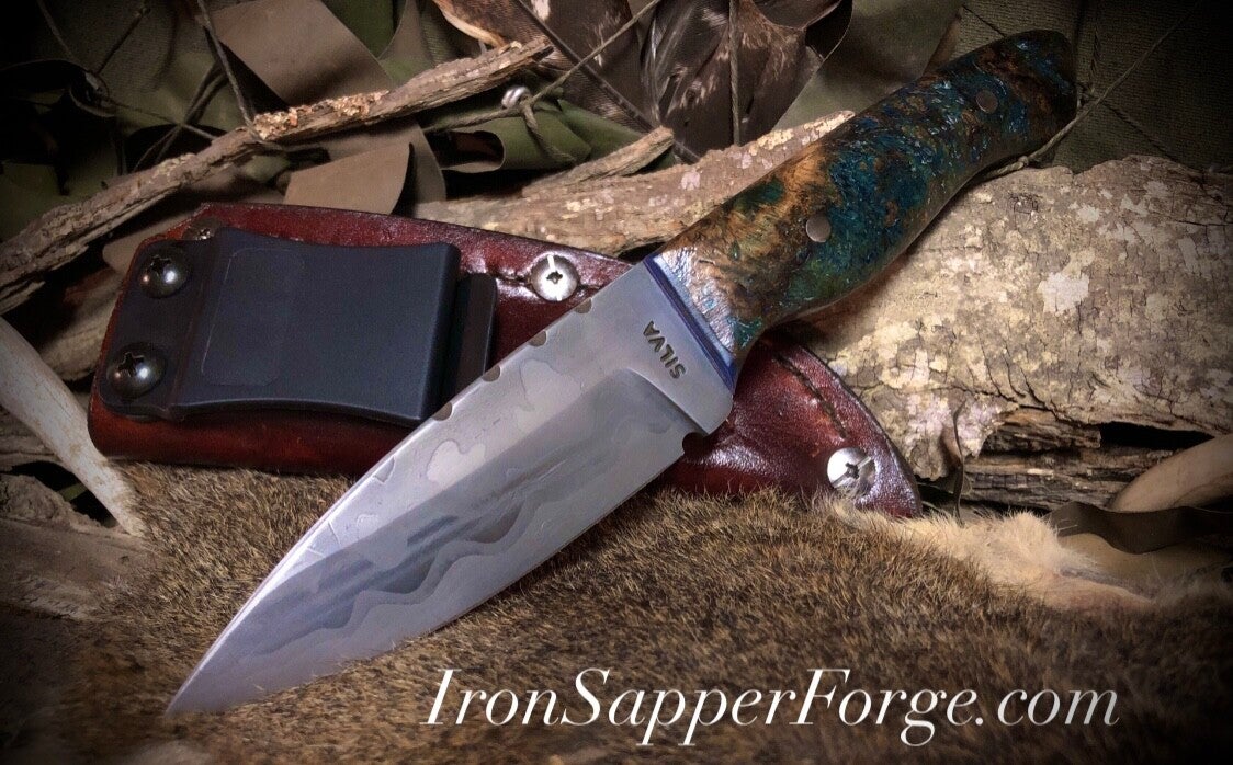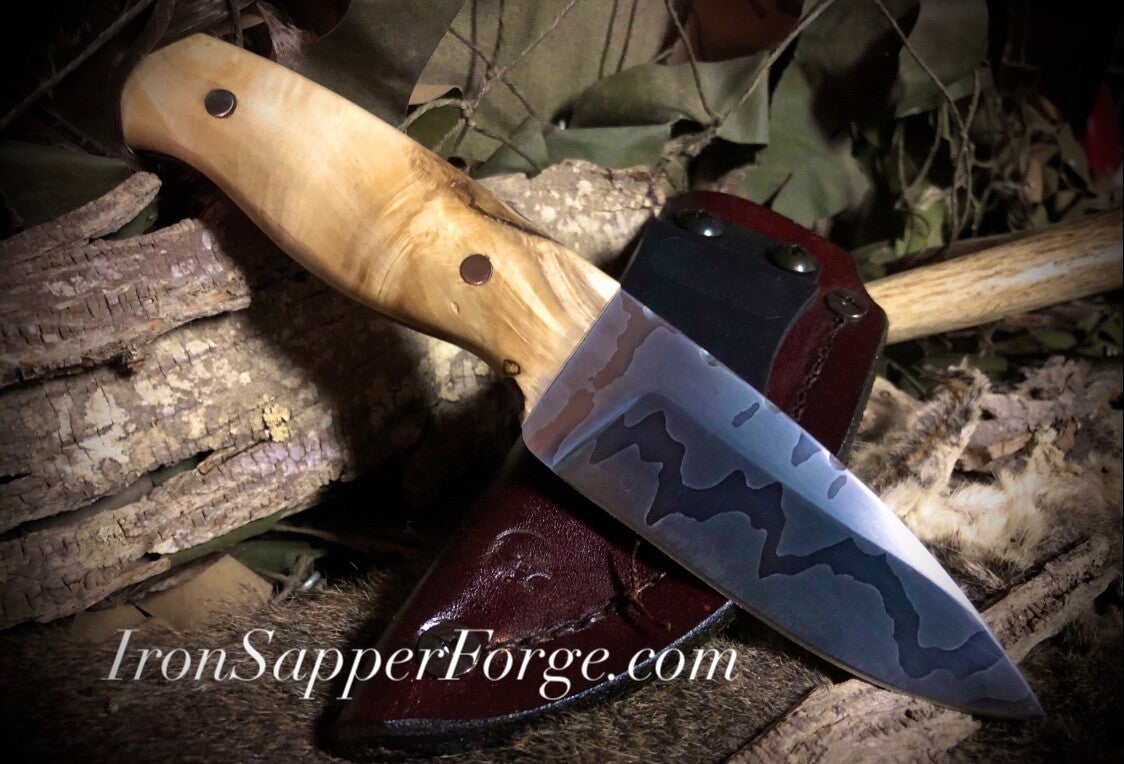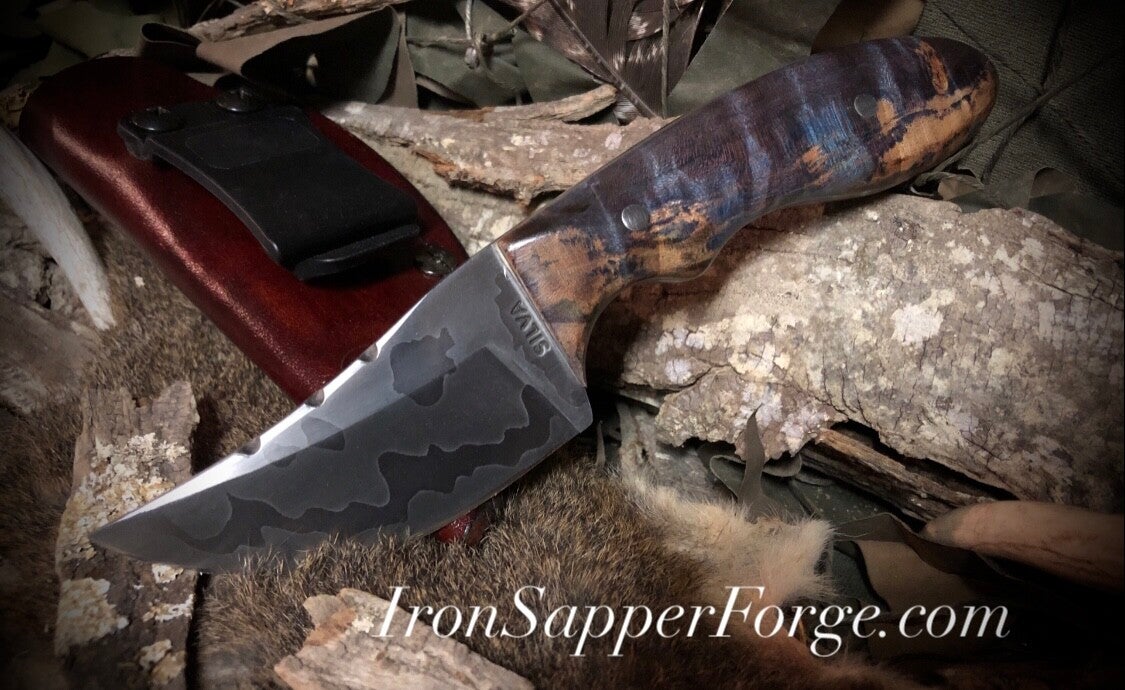 Layered steel blades, commonly referred to as damascus are alternating steel types layered and forge welded together. When done correctly, these layers show through the steel and a beautiful pattern emerges.